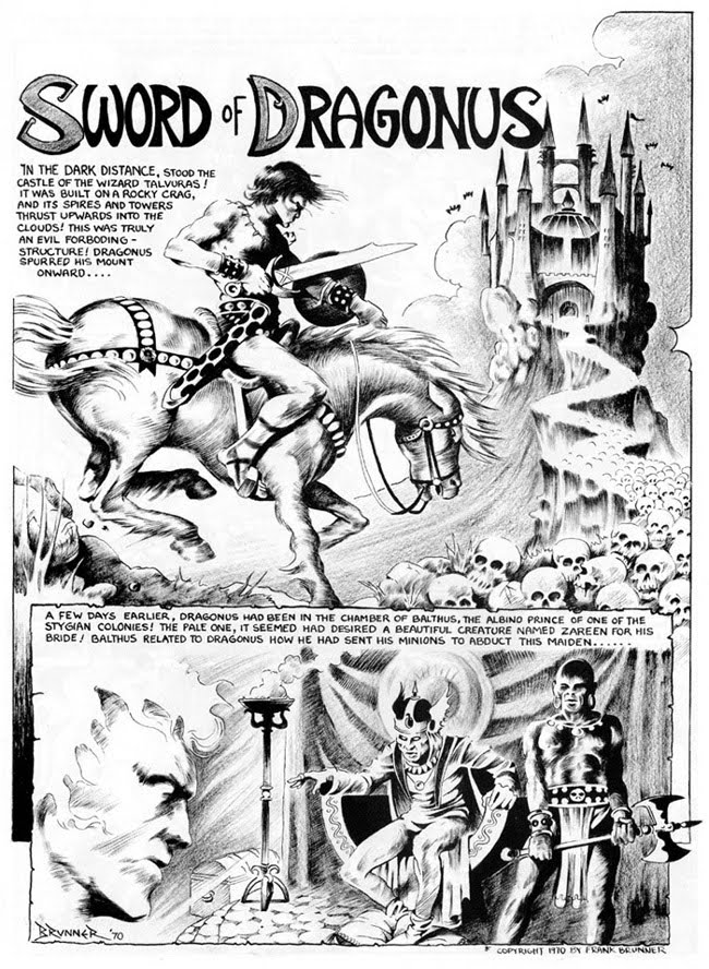 During the period while I was still living in Detroit I worked a full-time job and did my drawing at home in a makeshift art studio on the of the enclosed back porch. My mom, my brother and my sister were all supportive of my creative efforts. Whenever I was publishing, my operations would occupy the entire living room with uncollated printed pages for my fanzine.In between publishing fanzine issues I would draw and send out comic book page samples. I remember my first big break was from an obscure New York publisher. I got an assignment by mail for "Web Of Horror Magazine". This was a Sword & Sorcery tale entitled "Sword Of Dragonus" written by Chuck Robinson (I had submitted his script by mail along with my art samples, after editing it and typing it up from handwritten pages). I was to pencil, ink and letter the story. The publisher already had Berni Wrightson and Mike Kaluta, so even though the magazine was a bit of a Warren knock-off, I would be in good company.