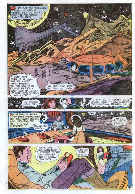 What it is, Groove-ophiles! How 'bout a sci-fi shocker courtesy a couple'a Joes from Derby's Charlton Comics, Gill and Staton? Yeah, Ol' Groove thought you might dig that idea. This one, "Lifelong Companion", was published in Ghostly Haunts #35 (July 1973), but it could just have easily been published in Haunted Love since it's as much a love story as a sci-fi fable.