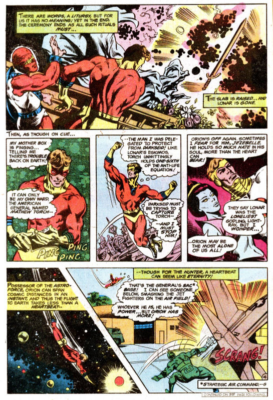 Welcome to day two of COSMIC WEEK, Groove-ophiles! Today we're gonna take a look at how DC Comics handled "cosmic" during the Groovy Age. While DC specialized in sci-fi heroes during the Silver Age, it took Jack "King" Kirby coming back during the early 70s to introduce them to "cosmic" (or better yet, Kozmik) with his Fourth World mags. After Jack left, there were a few sparks of "cosmic" here and there through the DCU (the best of which was probably Englehart/Rogers/Gerber/Golden on Mr. Miracle), but the best-remembered post-Kirby "cosmic" mag might be (emphasis on the might) Gerry Conway and Don Newton's Return of the New Gods. While Conway was more sci-fi than "cosmic" he was still dealing with Kirby Kozmik toys like Darkseid and the Anti-Life Equation, just in a calmer, less grandiose manner. Artist Don Newton will never be compared to Kirby (and no, that's definitely not a slap, Jack and Don are just very, very different from one another), but his New Gods have a majestic, classical feel akin to John Buscema's best Thor work, so Teen Groove really dug that. My fave ish, art-wise at least, was Return of the New Gods #16's (November 1978) "The Titan and the Hunter!" in which Joe Rubenstein did an especially suh-WEET job of inking Don's pencils. T'was the late Mr. Newton's fave ish, too, and Ol' Groove doesn't think you'll find it too hard to see why...