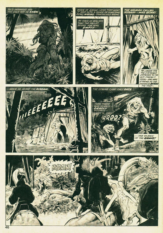 Well, if we can't have Buscema inking Buscema on Conan/Ka-Zar, then by all means give us Adams & friends. Being such an exceptional penciller himself, I was always pleasantly surprised by the restraint that Adams showed when inking others people's work. The few Conan stories that he inked - whether pencilled by Buscema or Gil Kane - are among my favourites. The ink washes on the pages above is a nice touch. Would I be right in thinking that Adams would have applied that himself?