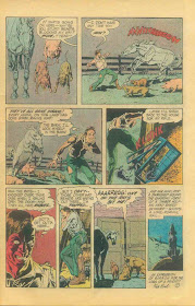 Nice Kaluta cover, but this is one of the rare occasions - because DC's early '70s covers usually had great colour choices - where the hues and intensities thereof actually fight for attention. Nothing is subordinated. Do we look at the shadowy figures in the moon first, or the lit window, or the group of animals at the left? Everything shouts 'look at me' and the result is confusion. I doubt it's Kaluta's fault, as the original art looks fine. It's the colouring.