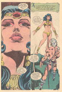 2. This story was done as a filler, so that Grell could devote most of his time that month to the Superboy/Legion wedding story in LIMITED COLLECTORS EDITION. But even so, it's a fantastic story, with a number of full-page and double-page spreads. I love these first 14 issues where Grell was fully immersed in the WARLORD series, doing story, pencils and inks. After this, Rubinstein inked issue 15, and Either Colletta or Bob Smith inked the remainder of issues up to 50. Grell was neither doing full art, or as focused on the WARLORD storyline, the plots seemed less imaginative and half-hearted for the most part. Although the Atlantis story in issues 26-27 was another highlight in the latter part of the series.