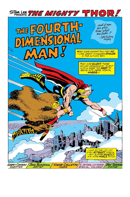 Hey, hey, hey, Groove-ophiles! Sunday will be the 89th anniversary of the birth of the late, great Big John Buscema! Our Pal Sal's big brother made a mark on comicdom in general and Marvel Comics in particular like few others. His powerful, graceful, sculptured art thrilled many a comicbook fiend like yers trooly. Avengers, Conan, Fantastic Four, Tarzan, and so many other comics were graced (and often elevated) by Big John's skills on a regular basis. After Avengers and Conan, Ol' Groove's favorite John Buscema run was on Mighty Thor. He "got" what Thor co-creator Jack Kirby was doing with Asgard (both in costumes and architecture) like few others, plus he was able to bring both the pageantry and power a comic featuring "gods" demanded. Now here are all the splashes from Mr. Buscema's first long run on Thor (178, 182-213, 215-226; April, August 1970-April 1973, June 1973-May 1974 )...for you and...for Asgard!