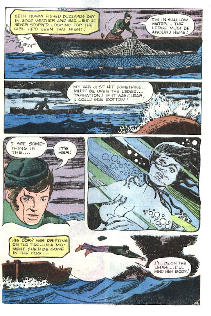 Dig it, Groove-ophiles! Yesterday was Valentine's Day, and since we don't post on Sunday (anymore) we'll make up for missing Valentine's Day today with a short-shocker from Haunted Love #6 (July 1974). Now, we can make up for missing Valentine's Day here in Groove City--but if you missed it, you might not have a ghost of a chance to make up with your sweetheart...unless you share a haunting tale of LUV with her... like..."The Vanishing Wreck" by Joe Gill and Fred Himes...