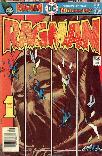 Ragman was created by twin legends Robert Kanigher and Joe Kubert. Both men are acknowledged masters of the comicbook medium, having carved legends for themselves (both separately and together) throughout the Golden, Silver, and Groovy Ages of comics. In early 1976, they got together to create a new super-hero--a super-hero whose purpose was to bring justice to the ghetto. Rory Regan, poor, Jewish (but with a name like that didn't K&K mean him to be Irish? Hmmmmmm...), Viet-Nam vet had the unbroken, unflagging soul of a true hero, and his lot in life would make him perfect to take on the grimy, lowest-end of the underworld scum even too small for The Batman to fool with, Ragman was grimmer and gritter than most anything DC had yet tried. A decade later, this mag would probably have been a major hit.