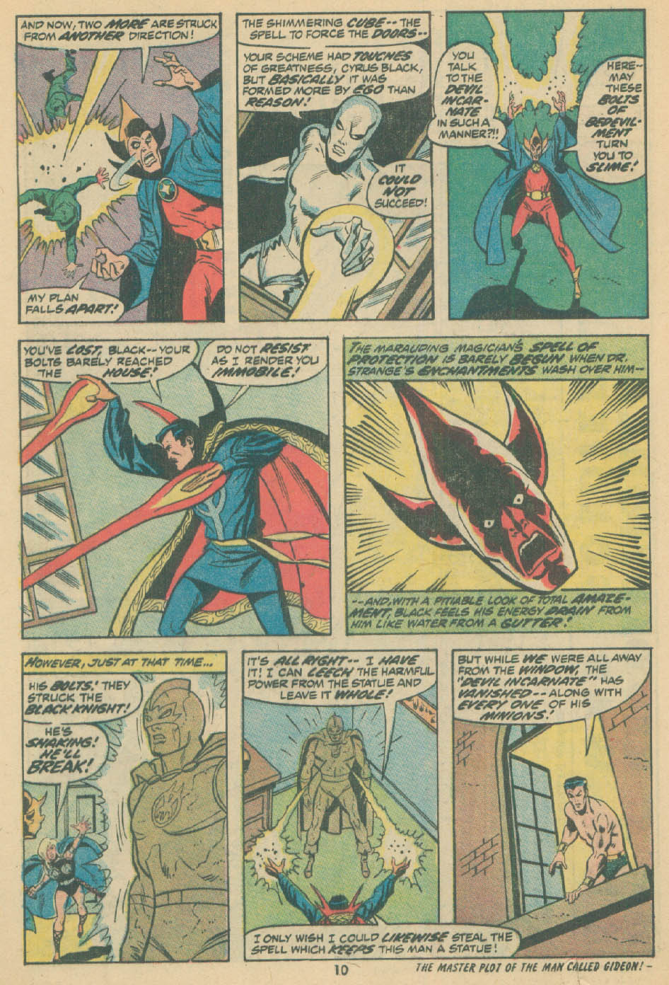 ReplyDeleteI enjoyed seeing this issue here. I've got most of the Defenders' run up 'till about issue '70, but I missed this one. You don't often see the villain say, at the end of the story, "Nuts to this! I might just give up being a super-villain altogether!"